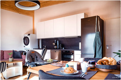Unsere Ferienwohnung ist komplett ausgestattet!, moderne Küche mit allen Geräten, komfortable Betten, kostenfreies WLAN, Flachbild-TV in Wohn- und Schlafzimmer, Waschmaschine, Trockner sowie Handtücher und Bettwäsche. Genießen Sie den gemütlichen Wohnbereich und die Terrasse. Uns ist wichtig, dass alles unkompliziert abläuft, damit Sie einen entspannten Aufenthalt genießen können. Wir freuen uns auf Ihren Besuch!